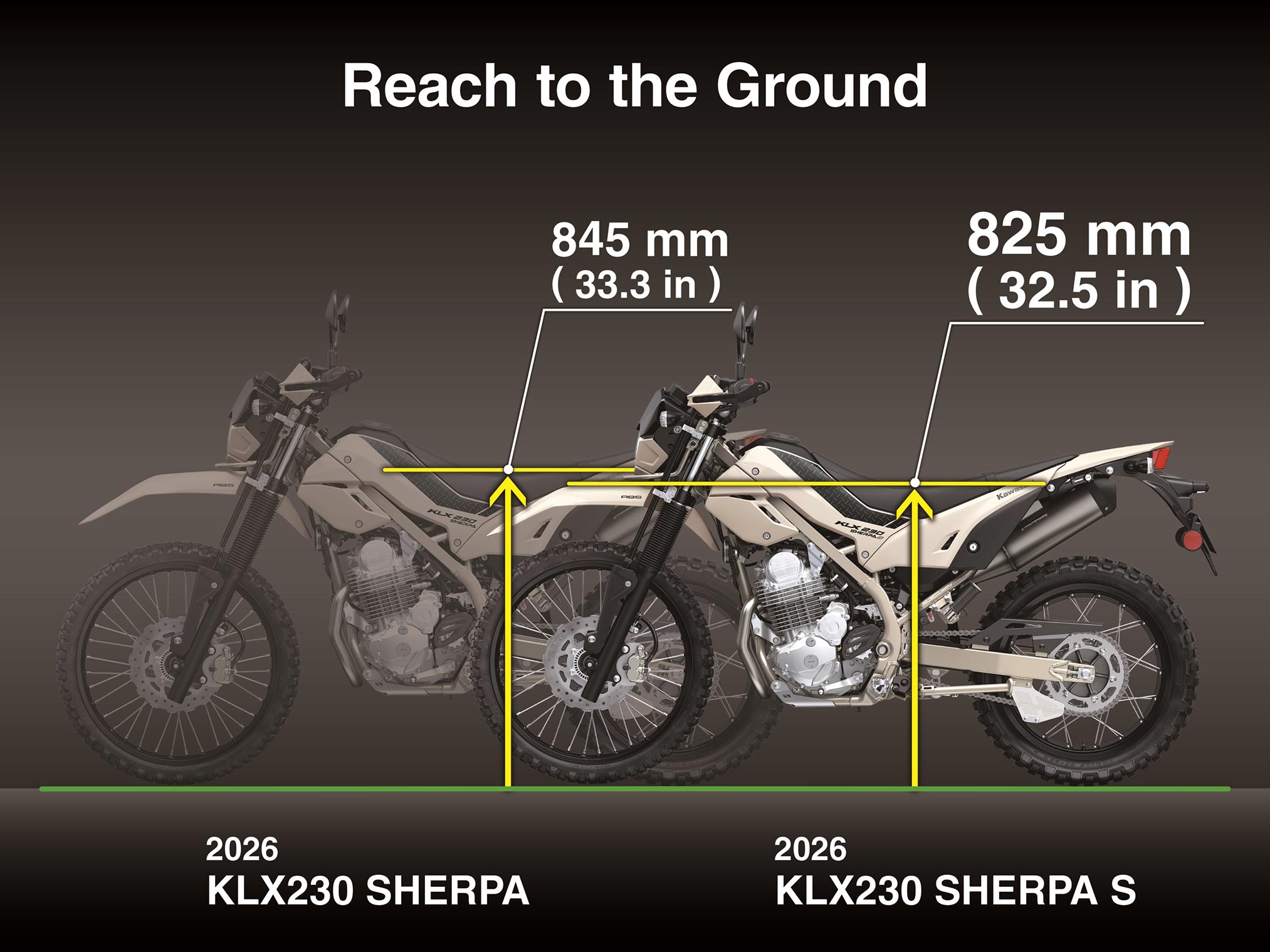 The benefit of the low 32.5-in seat height makes the KLX230 SHERPA S ABS motorcycle approachable and accessible to a wide range of riders, letting you commute city streets and power through weekend getaways with confidence.