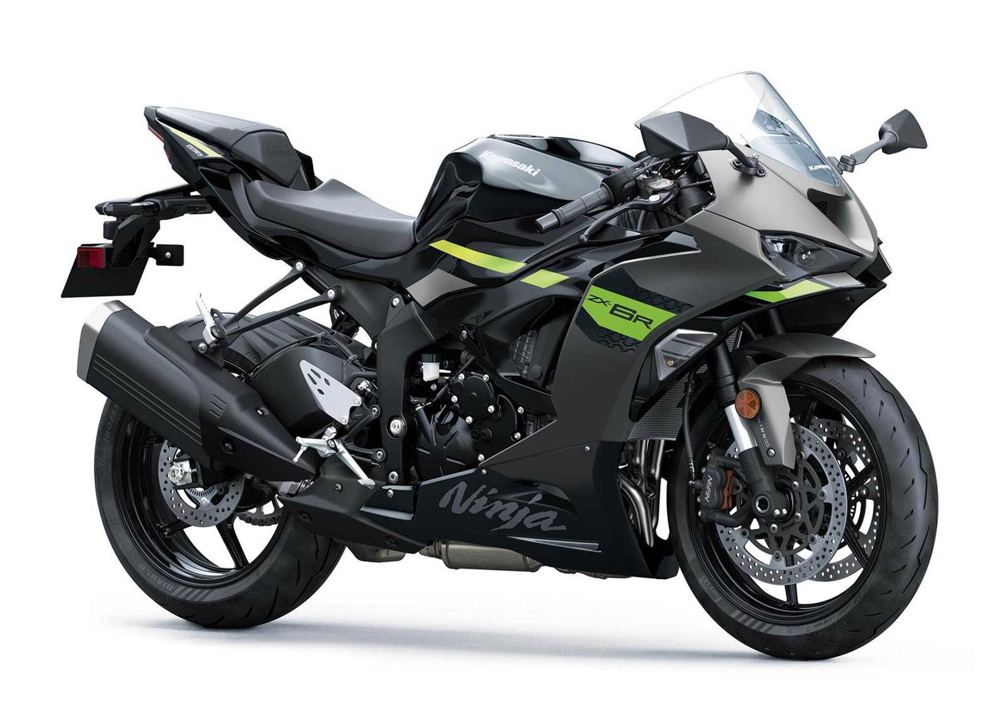 The 2026 Ninja ZX-6R and Ninja ZX-6R ABS are available in four colorways, Lime Green, Pearl Robotic White/Metallic Spark Black, Metallic Matte Graphenesteel Gray/Metallic Spark Black/Pearl Storm Gray and Metallic Matte Dark Gray/Ebony.