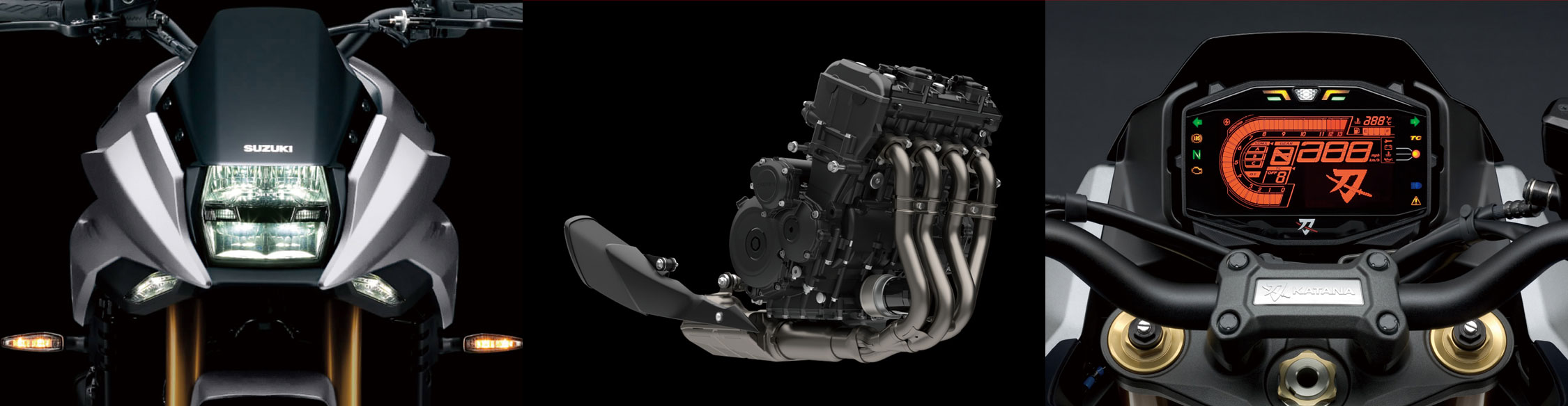 – The KATANA’s electronic throttle bodies help achieve a fine balance between idling speed control and power output characteristics for enhanced drivability, controllable behavior when accelerating out of corners, and an overall exciting riding experience, while also contributing to EURO 5+ emissions standards compliance.