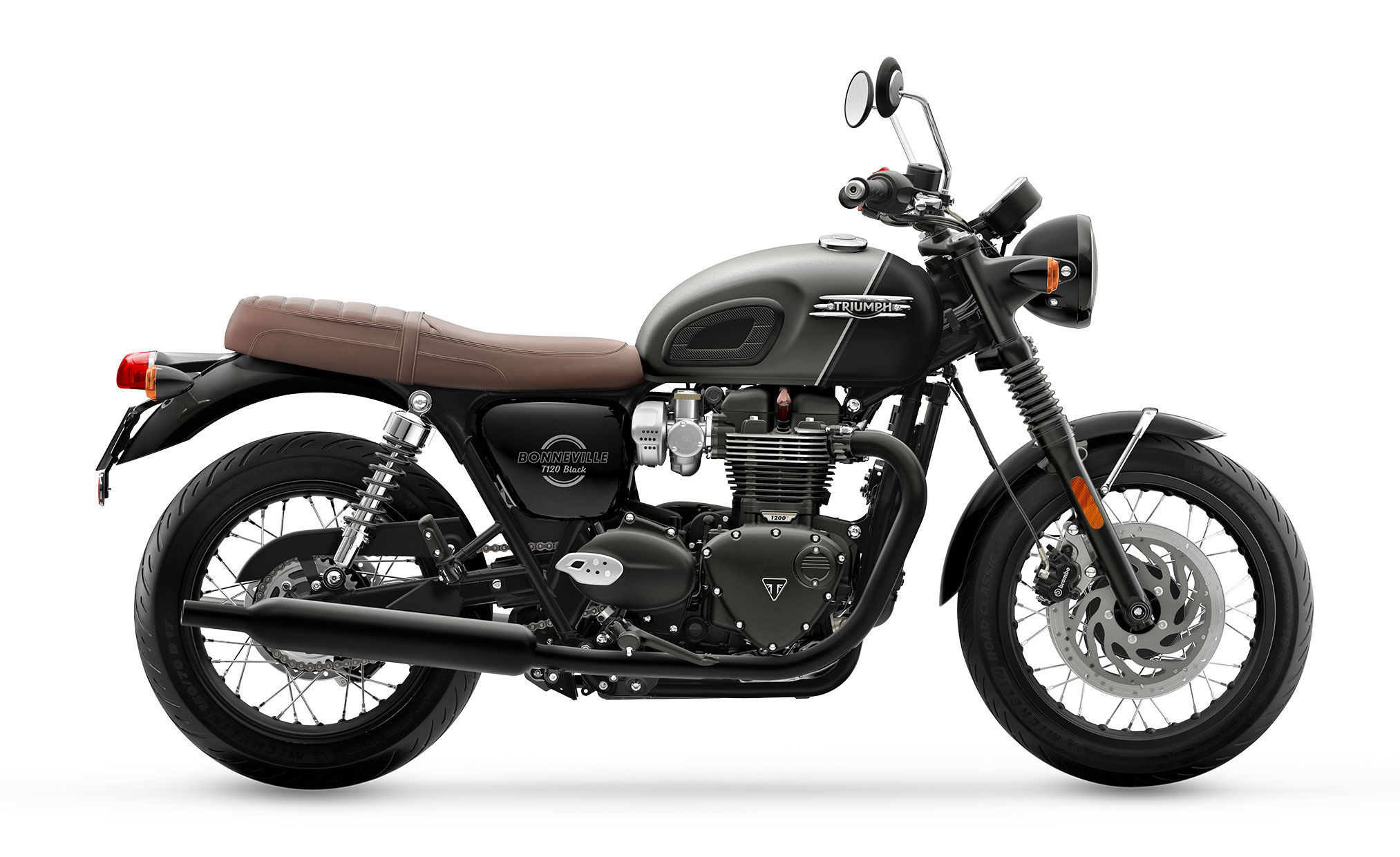 The popular T120 Black with its blacked-out engine casings, exhausts and details, plus a brown bench seat that contrasts beautifully with its stealth styling, is also available in two monochrome color schemes; classic Jet Black or the premium option, a moody new Matte Silver Ice and Matte Sapphire Black.