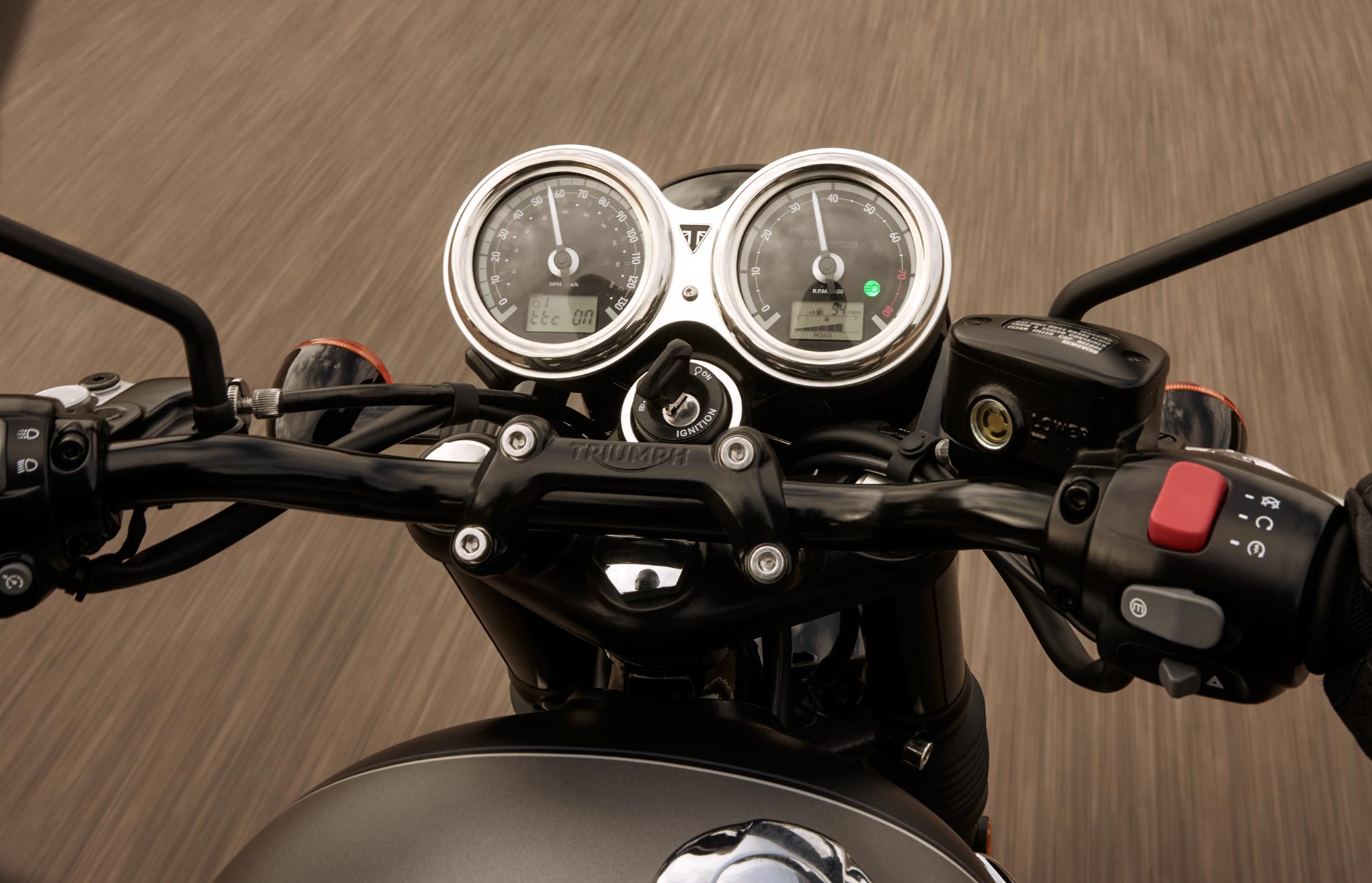 Now fitted as standard on the T120 and T120 Black, cruise control is available as an accessory for the T100. All models also gain a USB-C charging port discreetly located beneath the instruments, so riders can keep devices topped up on longer journeys.