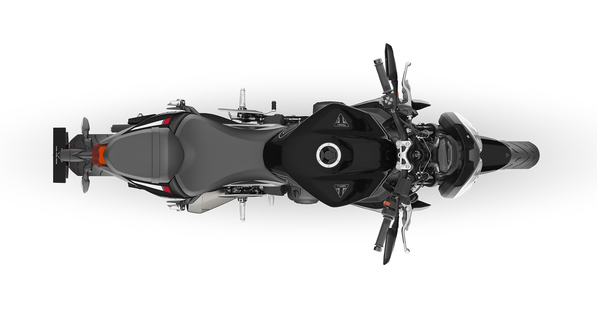 A major 765 engine update – more power at 118HP, more torque at 59LB-FT, improved responsiveness, faster acceleration, and a new freer-flowing exhaust for all of that trademark triple sound.