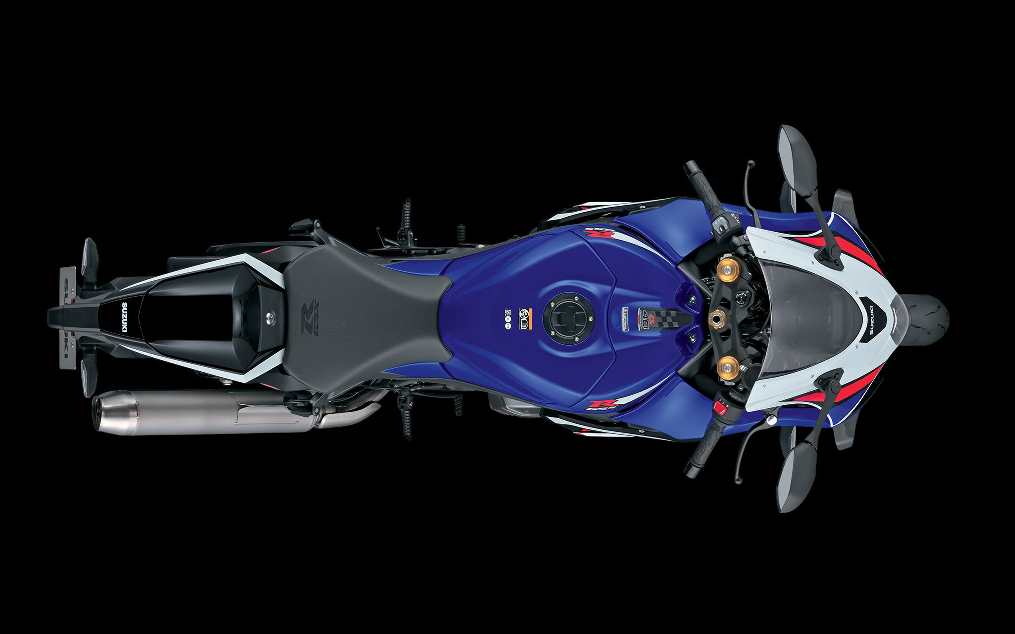 Electrical Features – The new Li-ion battery is lighter, more compact and provides more stable voltage under load. The black background LCD multifunction instrument panel was inspired by the GSX-RR MotoGP dash, and the aerodynamic fairing houses a bright, stacked LED headlight assembly and eyebrow position lights above the Suzuki Ram Air Direct intake ducts.