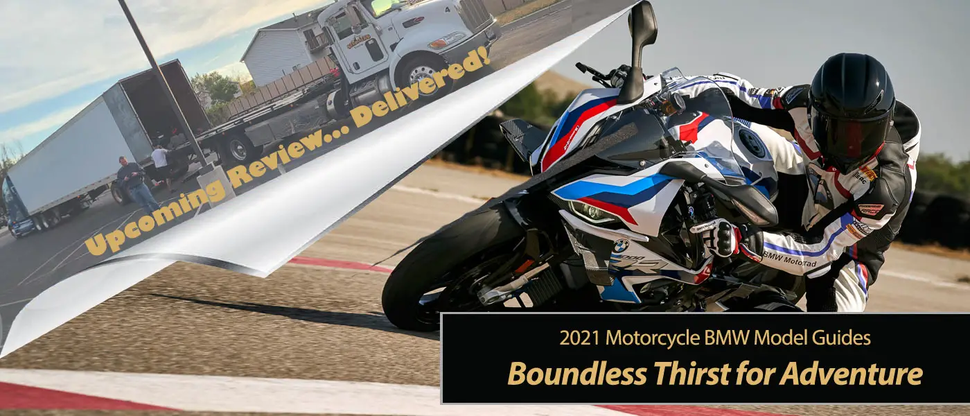 Good morning, good morning! Two exciting pieces of news to share with our readers; the new 2021 BMW models & upcoming review is here and our special secret review has been delivered! First, a ton of exciting new 2021 BMW motorcycles are here, new sportbikes, new adventure bikes, new touring bikes, new roadsters, new heritage and a new 1800cc engine! Second, what do you ride that comes in a 18-wheeler and needs a full sized tow truck to unload? Answer, it is our NEW long-term review vehicle (and yes, you need a helmet and motorcycle license for it). What is it? Read below and watch our special sneak peek trailer created just for you. The new Polaris Slingshot is one of the craziest vehicles on sale and we have it for not 1 or 2 weeks but 3 long weeks with unlimited mileage for our readers. We are also taking over a dozen lucky riders with us to experience the thrill and rush of the most powerful top of the line muscle trike.