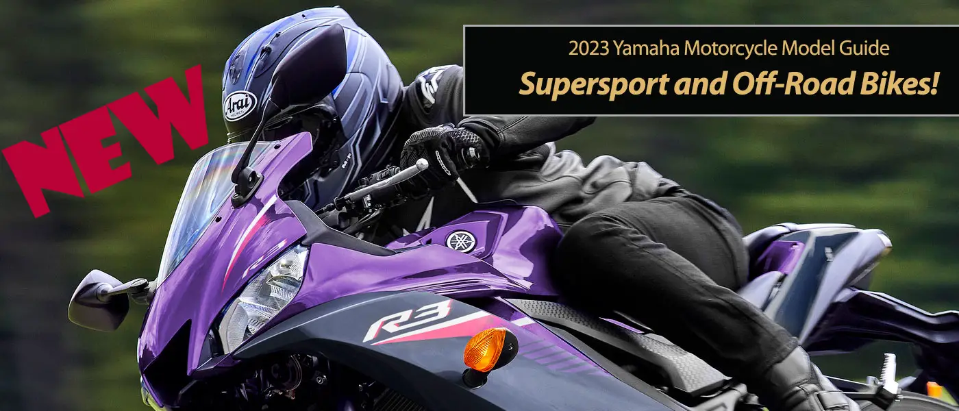 Yamaha riders, get your engines running! Dozens of new cutting-edge 2023 Yamaha Supersport and Off-Road Bikes with Yamaha’s “Lighter, Slimmer, Faster & More Fun” philosophy will really get your moving. Total Motorcycle has the latest 2023 Yamaha YZF-R1M, YZF-R1, YZF-R7 and YZF-R3 supersports, plus new motocross 2023 Yamaha YZ450F Monster Energy Yamaha Racing Edition and YZ450F along with 2023 Yamaha YZ250X and YZ125X cross country bikes!
