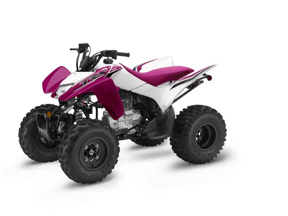 Praised for its approachable, user-friendly nature, the TRX250X is the ideal machine to introduce new riders to the thrill of off-road recreation. The 229cc engine delivers smooth, manageable power and plenty of torque to conquer hills and technical terrain. Honda’s exclusive SportClutch™ eliminates the concern of engine stalling, while retaining the experience of operating a manual clutch. Long-travel suspension tames rough sections of trail, while the lightweight chassis delivers nimble-yet-predictable handling. With a well-rounded collection of features and Honda’s renowned reliability, it comes as no surprise that so many riders choose the TRX250X.