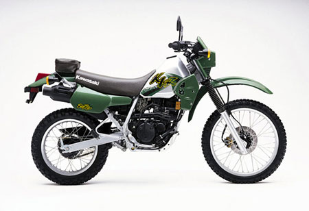 The KLR250 has semi-double cradle frame, detachable aluminum rear sub-frame, Bottom-Link Uni-Trak rear suspension, adjustable preload and 4-way reboiund damping rear shock, automatic cam chain tensioner and silent cam chain. It also has double engine balancers, aluminum skid plate, universal tires and handlebar-mounted choke.