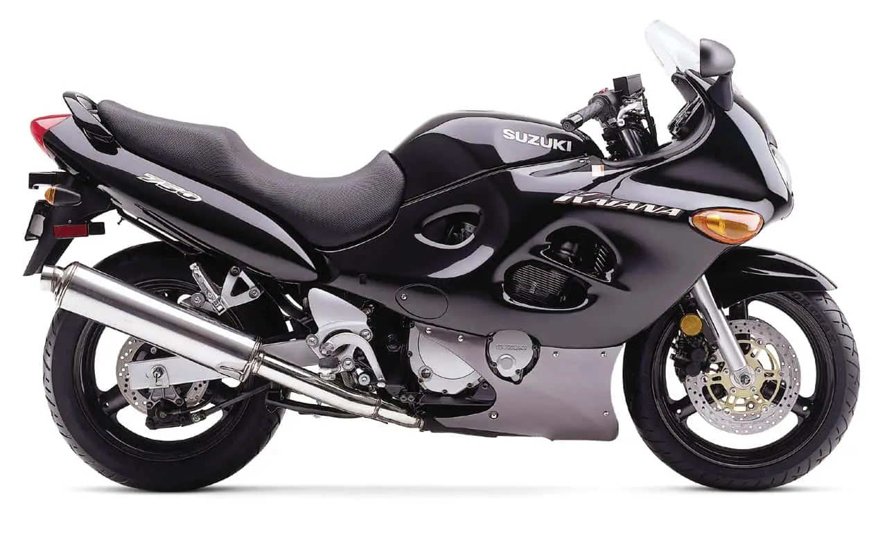 For 2001, the equally nimble 750 Katana sports new colors and graphics. The larger Katana provides the same comfortable ergonomics as the 600, plus the additional horsepower of a 750cc engine. Most of the same traits that distinguish the 600 can be found on the 750: a double overhead cam, 16-valve, four-cylinder engine, silent-type cam chain, 4-into-1 stainless exhaust system, a rock-solid perimeter frame; well-balanced, supple yet firm suspension; lightweight aluminum wheels with wide radial tires and triple-disc brakes. With enough performance and sophistication to please almost anyone, the 750 Katana provides the best price/value of any 750 sport model on the market.