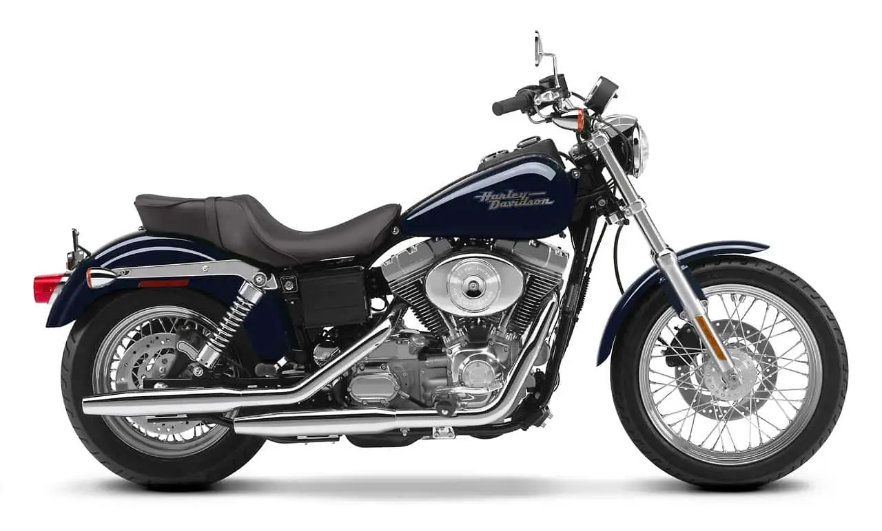 This bike exists for riders who love a sporty custom ride. Set low in a vibration-damping frame is the Twin Cam 88™ engine, filled to the brim with torque. In 2000, the FXD received a new XR-style flat track handlebar which created a more aggressive stance and performance-minded look and feel. A responsive 28-degree front-end with dual rate springs, Fat Bob tank, center console, top-mount speedometer and stepped, two-up seat are all standard on the Dyna Super Glide&rg;. The Dyna Super Glide® continues to represent the best value in the Big Twin product line, with tremendous opportunity for individual customization and performance upgrades.