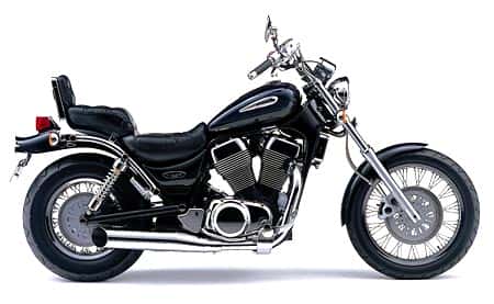Built to be the big brother of the 800 Intruder, the 1400 Intruder shares the same basic cruiser design, combining the classic “chopper” lines, rich paint and lots of chrome. The 1400 features a larger air/oil-cooled engine with three valves per cylinder, overhead cams and a low maintenance shaft final drive system. The big 45-degree V-twin produces a bunch of low rpm torque and a low, rumbling exhaust note for just the right sound. Choose from either of the two stylish color combinations available in 2002 and you can’t go wrong with the Suzuki VS1400GLP Intruder.