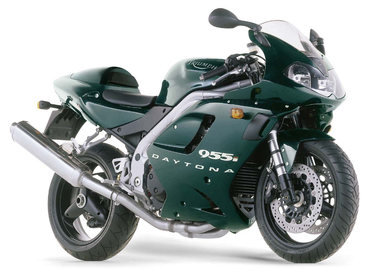 It is only fitting that the flagship model of Triumph’s modern success story should receive the centenary treatment too. The power-packed Centennial Edition Daytona keeps the 2002 engine and chassis modifications but reverts to a single-sided swing-arm for this special edition. A colour-matched seat cowl and carbon fibre side panels and cockpit infills set-off the sensational one-off Aston Green paint scheme. A special milestone centenary badge completes the look.