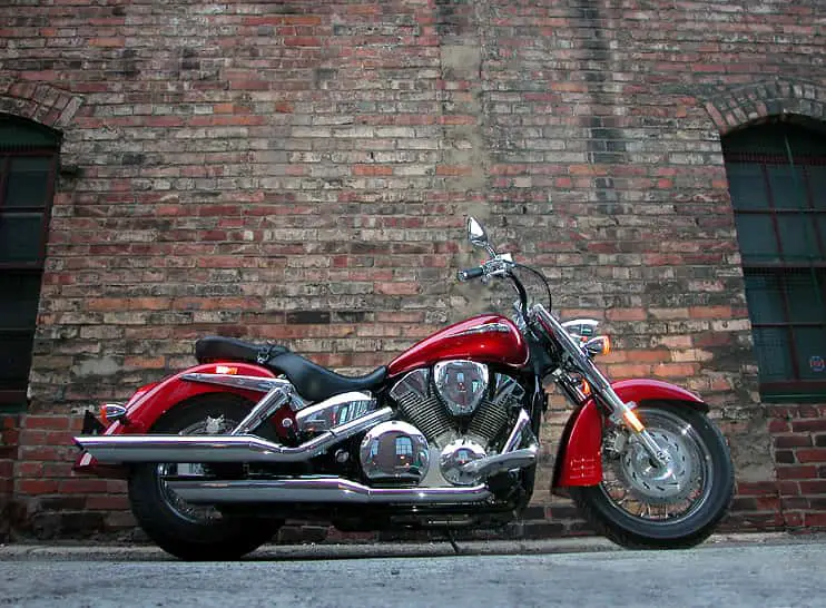 · Traditional spoke wheels and a fat, 140/80-17 front tire gives the VTX a commanding profile.