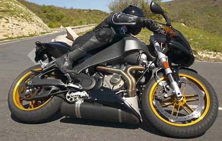 The final key to the uncanny agility of the XB12R Firebolt is a chassis geometry that combines a 21-degree fork angle and 83mm of trail with a compact, 52-inch wheelbase. Fifty-two percent of the bike’s mass is carried on the front wheel. The result is a sport motorcycle with the quick reflexes of a GP racer, a bike that will flick into a corner instantly and hold a line that other sportbikes can’t touch.