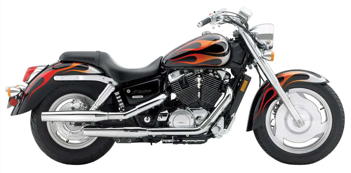– Street-rod styling features chrome fork-leg covers, deeply valanced fenders, and beautiful cast aluminum wheels machined to a satin finish.