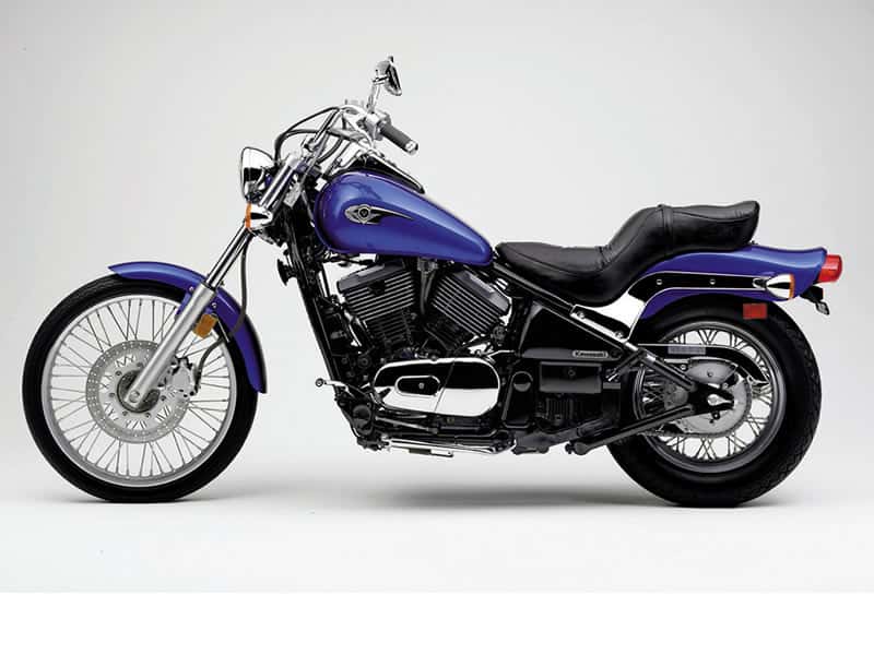 Like the engine, the Vulcan 800’s chassis is the beneficiary of high-tech design and is clothed in nostalgic cruiser garb, including wire wheels, stepped seat and a teardrop fuel tank. Kawasaki’s own UNI-TRAK® rear suspension system is hidden away to give the triangulated steel swingarm a clean, hardtail appearance. But in actuality, the linkage system applies progressive damping and spring forces as the single shock is compressed to provide a smooth ride.