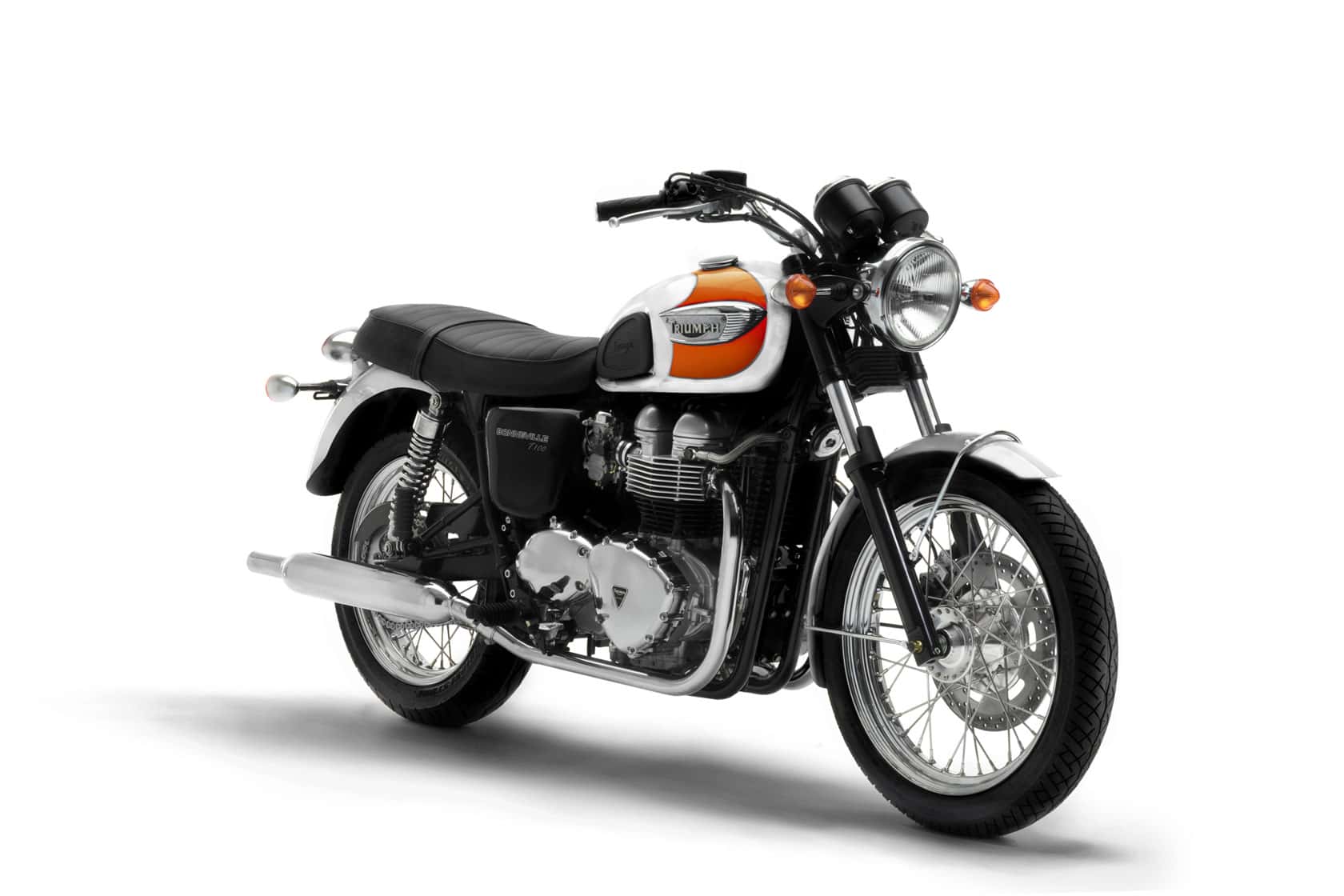 Today the T100 is the very essence of style and individuality, just as it was 40 years ago. All of the T100’s crisp coach lines are hand-applied – as they were back then – and new for 2005 is the supremely elegant two-tone Opal White with Tangerine infill paint scheme, which provides a striking alternative to the stunning Jet Black with White infill.