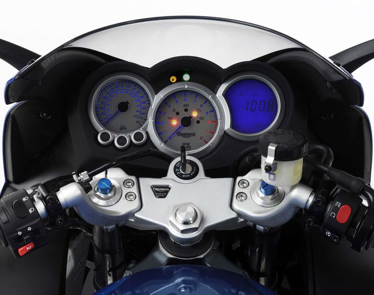 The Sprint ST’s sleek look is both functional and stunning and everywhere neat touches, like the chrome infill bars and front indicators set in the mirrors, add class. Styling cues, such as the triple front headlights and triple exit exhausts, LED rear light, complement each other fluidly and the Sprint ST has a cohesive air of a machine that mixes function and form perfectly. New instrumentation includes an LCD trip computer with average MPG and speed functions, amongst others. Fuel capacity is a useful 21 litres (5.5 gal US).