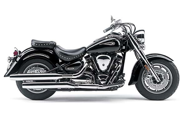 If you prefer your basher in black, slide your leg over the sleek Road Star Midnight Star. Bathed in gleaming onyx lacquer, a studded seat and radiant chrome as far as the eye can see. This ultimate bad boy’s got ravishing good looks and the muscle to match.