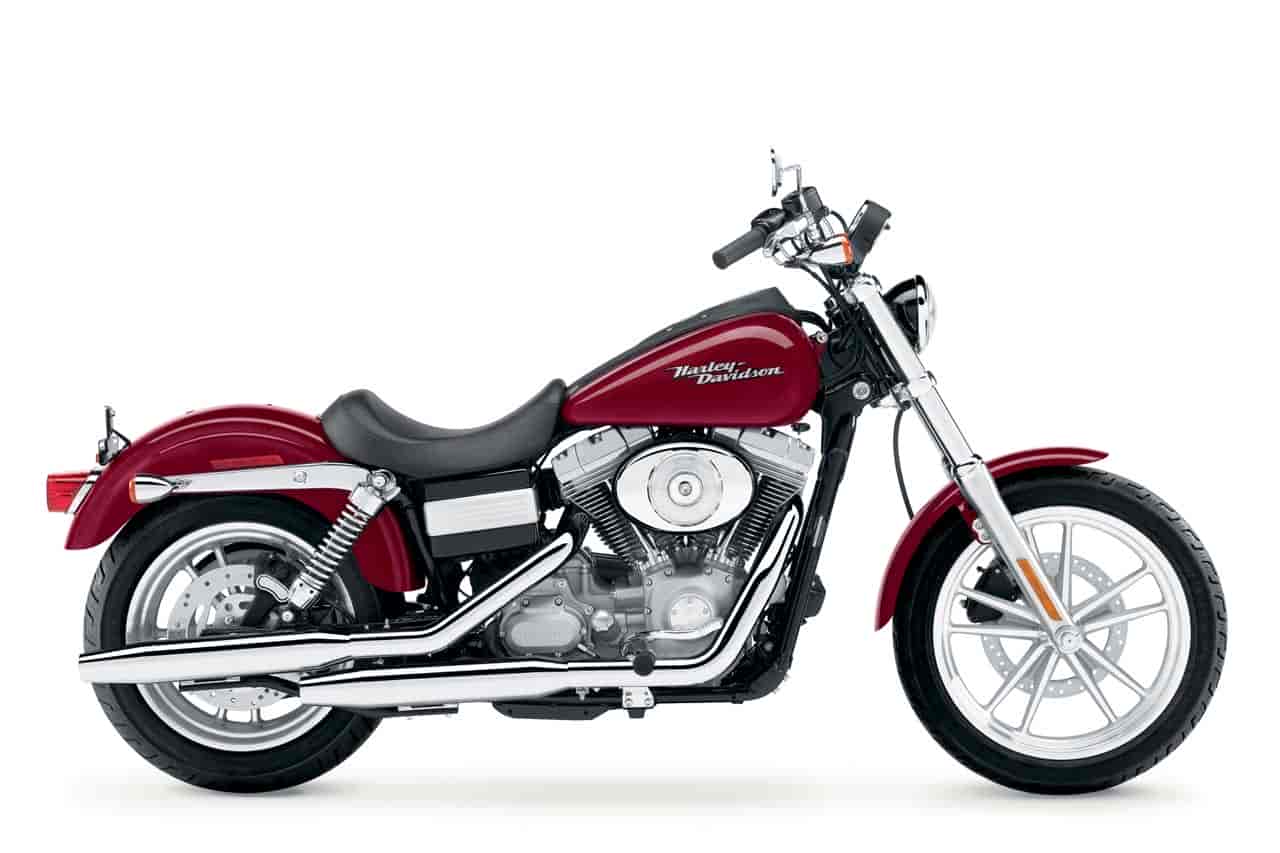 The aggressive performance of the FXDI Super Glide is enhanced for 2006 by the addition of the new Dyna chassis design and a wider, 160mm rear tire. The most affordable Harley-Davidson Big Twin model, the Super Glide serves as an entry point for owners with plans for extensive customization. A solo seat and silver 10-Spoke Cast Aluminum wheels are new features for 2006. The Super Glide is offered in four solid colors, with a new fuel tank decal.