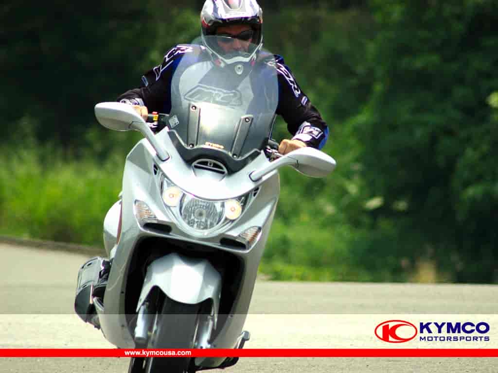 The Xciting 500 offers KYMCO quality and economy in a new, bigger package. Its 500cc, DOHC liquid-cooled engine delivers at highway speeds with plenty of passing power. KYMCO’s popular CVT transmission provides stepless acceleration from a standing start all the way up to cruising speed. The 15″ front and 14″ rear tires, adjustable hydraulic rear shocks and telescopic front forks smooth out the bumps. A well-padded driver’s seat with adjustable backrest, four- position adjustable brake levers, and the aerodynamic windscreen all add up to an incredibly comfortable and safe ride.