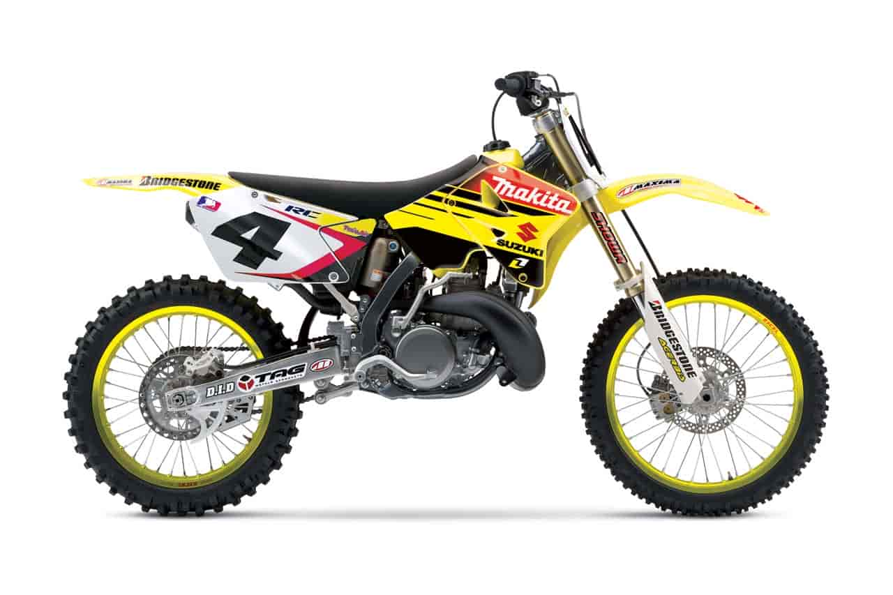 Special limited edition model with Team Makita Suzuki graphics, gold-colored wheels and black seat similar to Ricky Carmichael’s championship-winning RM250