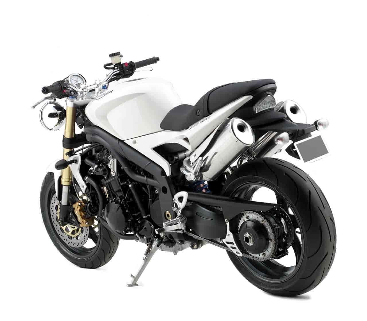The LED rear light unit and clear-lens indicators complement the twin headlights, themselves very much part of the Speed Triple’s unique style. The instruments feature an analogue tachometer, programmable gear change lights, trip computer and digital speedo. Four paint options are available, Jet Black, Neon Blue, Fusion White and Scorched Yellow. A host of factory parts including a high-performance exhaust (for circuit use only), cosmetic additions and soft luggage are available from the Triumph accessories catalogue.