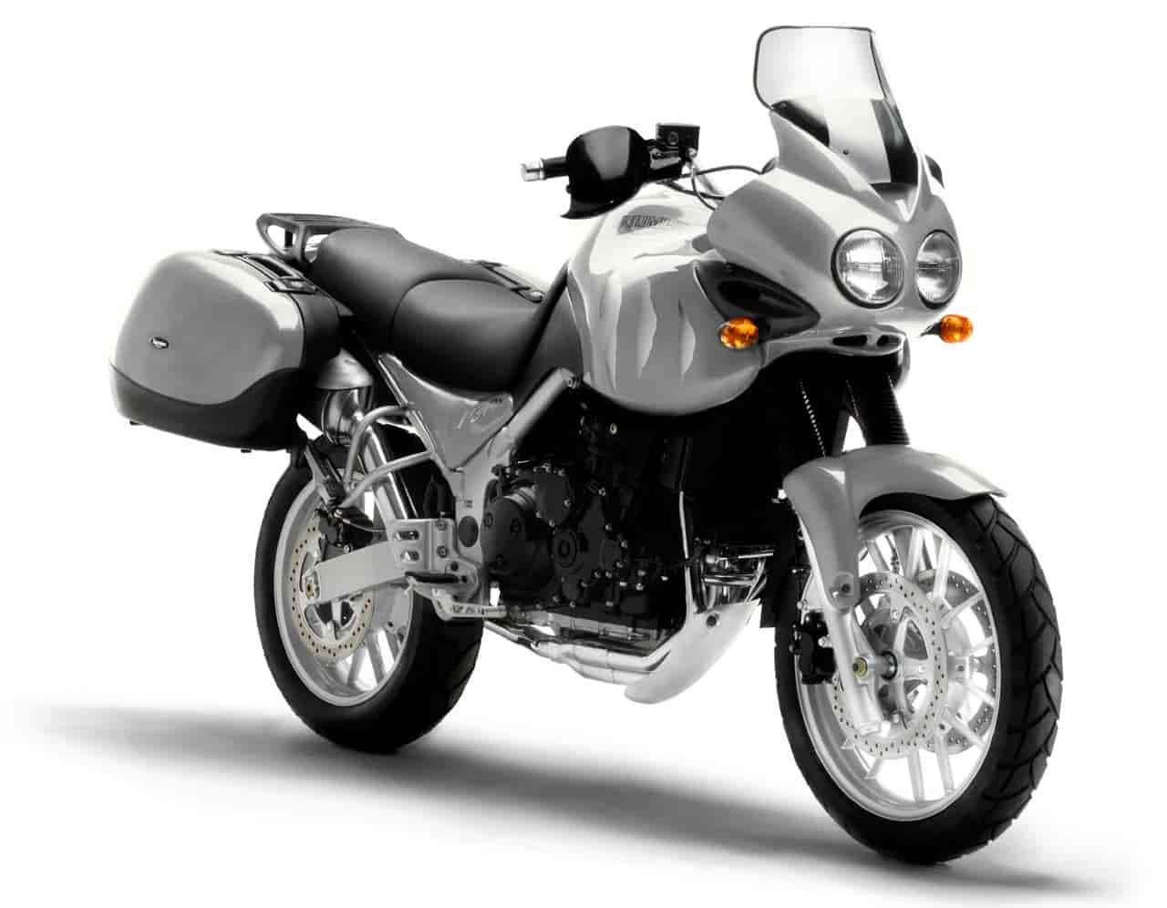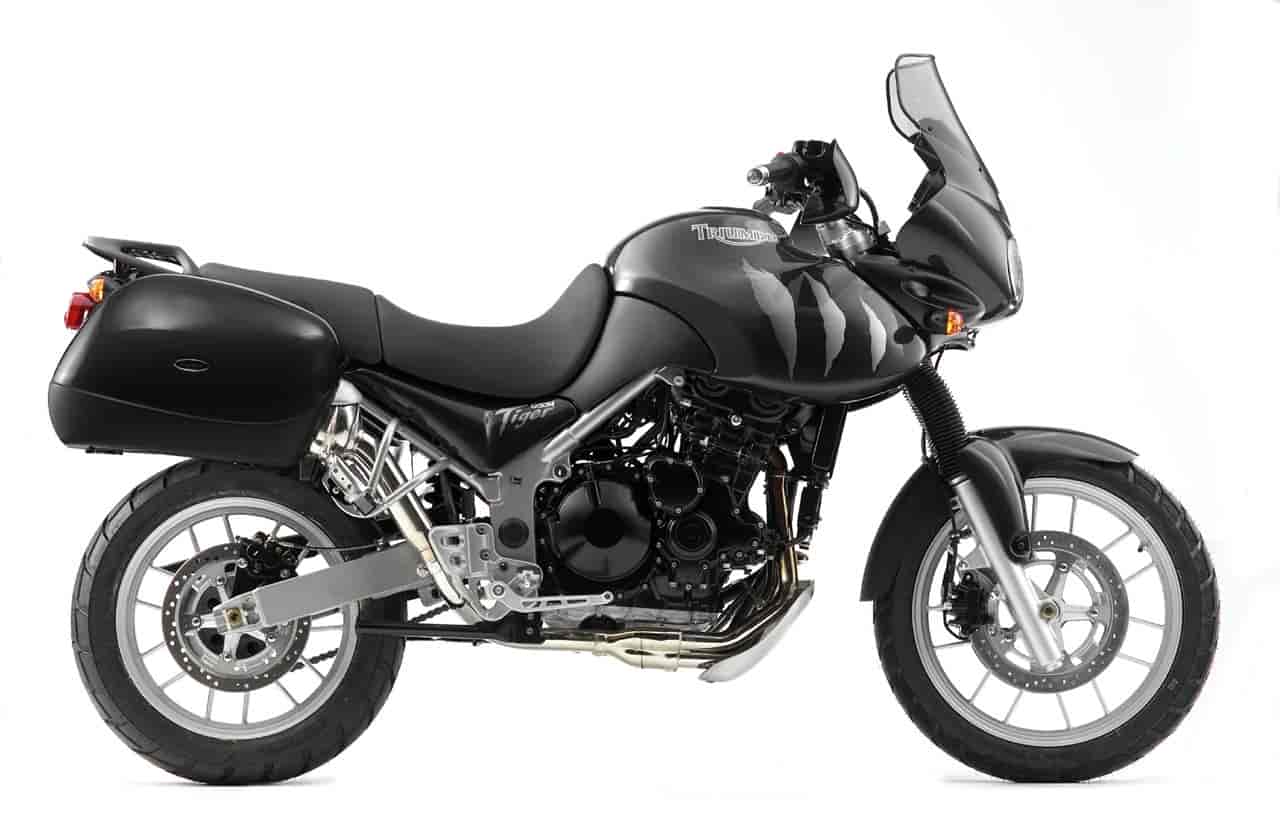 With practical touches like the large 24 litre (6.3 gallon US) fuel tank, lockable hard cases, hand guards, heated grips and centre stand fitted as standard plus the efficient, frame mounted fairing to keep the windblast and weather at bay the Tiger’s usability factor multiplies. The seat height also adjusts through a 20mm range. As with all Triumphs, an extensive range of accessories is available – including soft luggage and gel seats. Silver frame and wheels complement the three colour options of Jet Black, reintroduced by popular demand, Aluminium Silver and Caspian Blue.