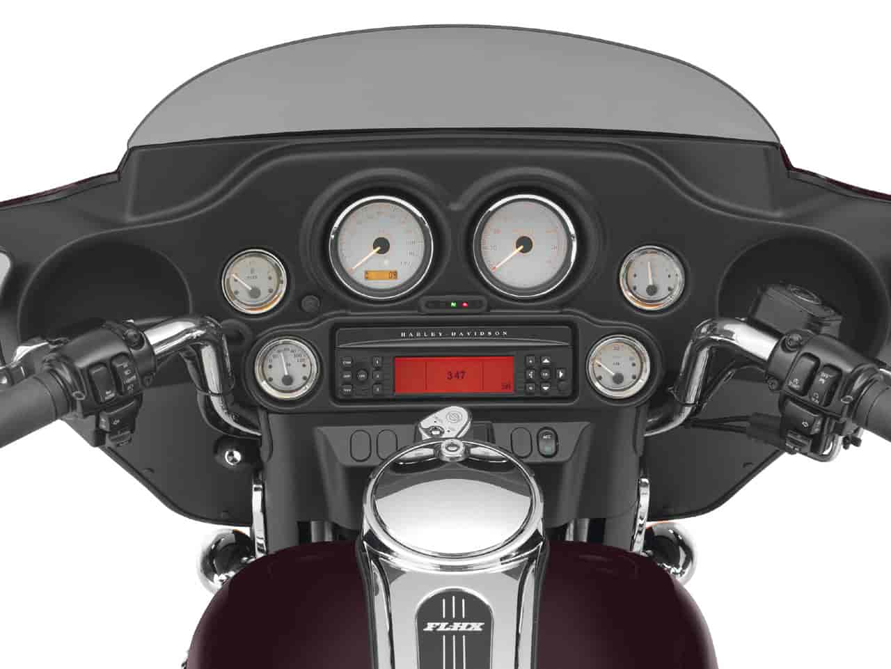 The FLHX Street Glide has proved to be every bit the dresser with an edge for riders interested in considerable custom and comfort. Taking its key styling cues directly from design trends in the custom marketplace, the Street Glide presents full touring capability in style and comfort. It comes equipped with the traditional “bat wing” fairing, the 40-watt Advanced Audio System by Harman/Kardon, durable GTX nylon saddlebags, air-adjustable rear suspension and triple-disc brakes.