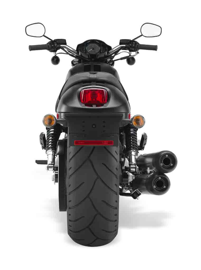 As a new VRSC model and the evil twin brother of the Night Rod, the VRSCDX Night Rod Special provides wicked style and performance. With an all-black finished 1130cc Revolution powertrain pounding out 120 horsepower and 80 ft. lbs. of torque, the VRSCDX Night Rod Special reflects the elite end of the power cruiser segment. Blacked-out components show a rebellious attitude that rides on a wide 240mm rear tire. Keeping the Night Rod Special on the dark side are black features like the frame, forks, triple clamps, swing arm and Black Machined Slotted Disc Cast Aluminum wheels with orange pin-striping. Taking the Night Rod Special further into the heart of darkness are a color-matched speed screen visor, brushed Straight-shot Dual exhaust with black end caps and exhaust shields, and a black-on-black racing stripe paint scheme. A five-gallon fuel tank lies under a newly restyled, low seat, combined with forward controls and drag style handlebar for a comfortable ride. Available in Black Denim color with Vivid Black racing stripe or Vivid Black with Black Denim racing stripe.
