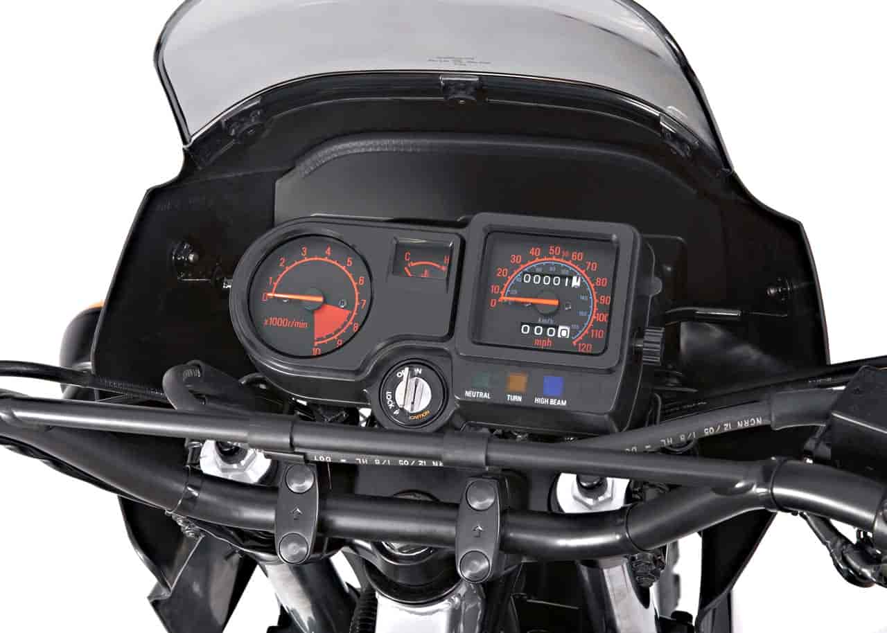 – Temperature gauge, tachometer and trip meter keeps rider informed