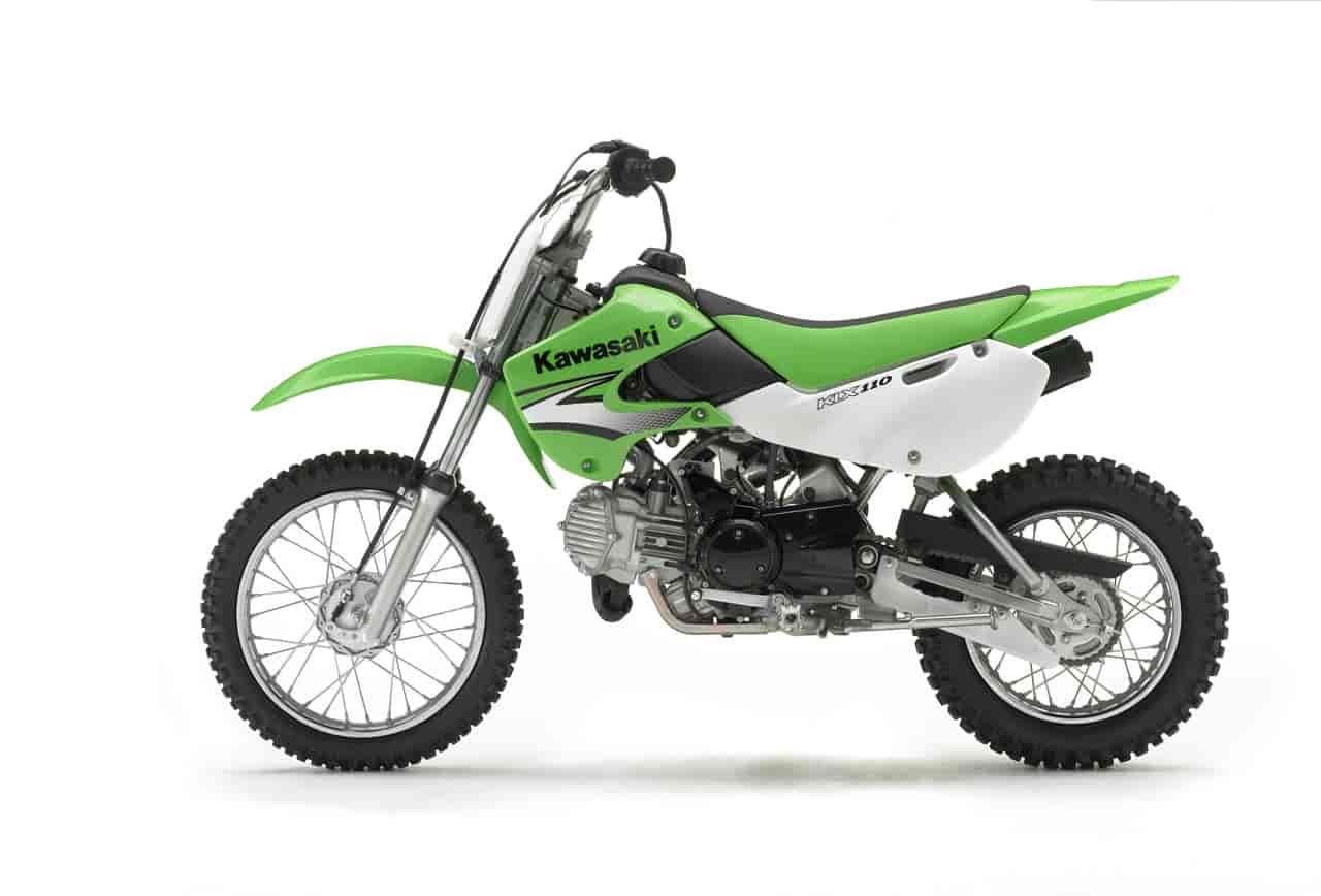 Power for the KLX110 comes from a user-friendly 111cc air-cooled, two-valve, four-stroke engine, and features a screw-type adjustable throttle limiter. This easily accessible feature allows parents to control the speed for younger riders.