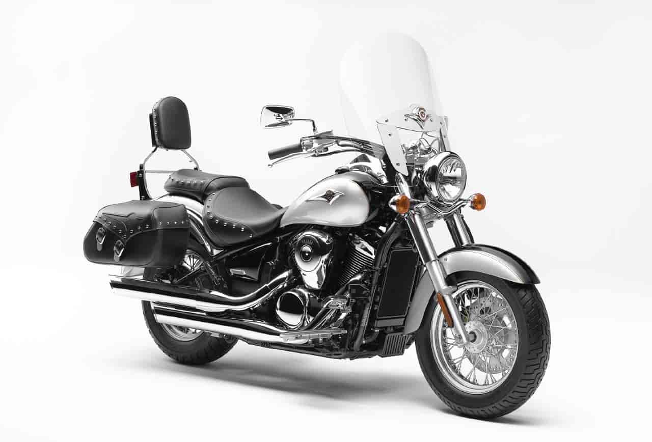The Kawasaki Vulcan® 900 Classic LT motorcycle takes the class-leading attributes of its Vulcan 900 Classic sibling and ups the ante with additional custom touring features and enhanced style. Kawasaki accessorizes the Vulcan 900 LT with saddlebags, a special seat, passenger backrest and an adjustable windshield. The only add-on that doesn’t show-up on the showroom hang-tag is the riding enjoyment that this new Vulcan addition will provide its owners.
