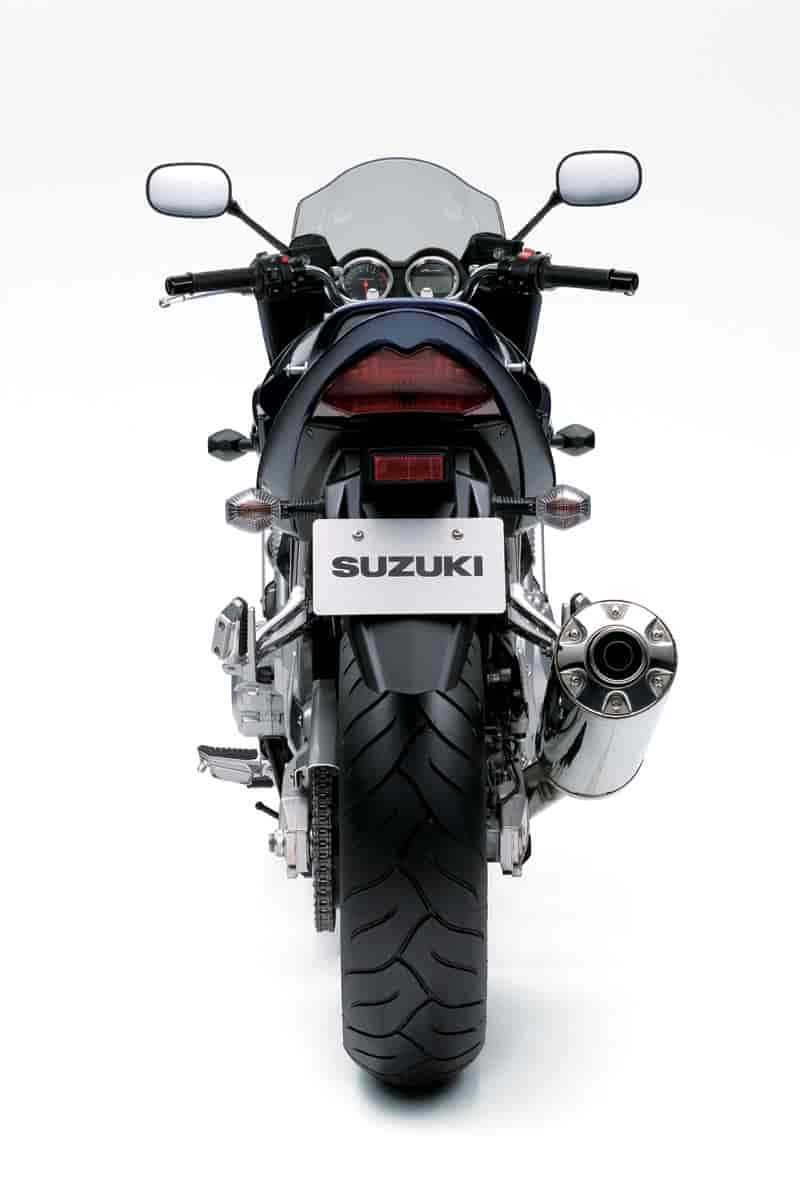 The hydraulic clutch utilizes coil springs for improved lever feel and a new six-speed transmission improves acceleration, reduces top gear rpm and a secondary balancer shaft further quells engine vibrations. A new large exhaust catalyzer is built into the high-volume muffler and when combined with the Suzuki Pulsed AIR system and the oxygen feed back closed loop engine management system make this the cleanest running Bandit ever built meeting tough Euro3 and Tier 2 emission standards.