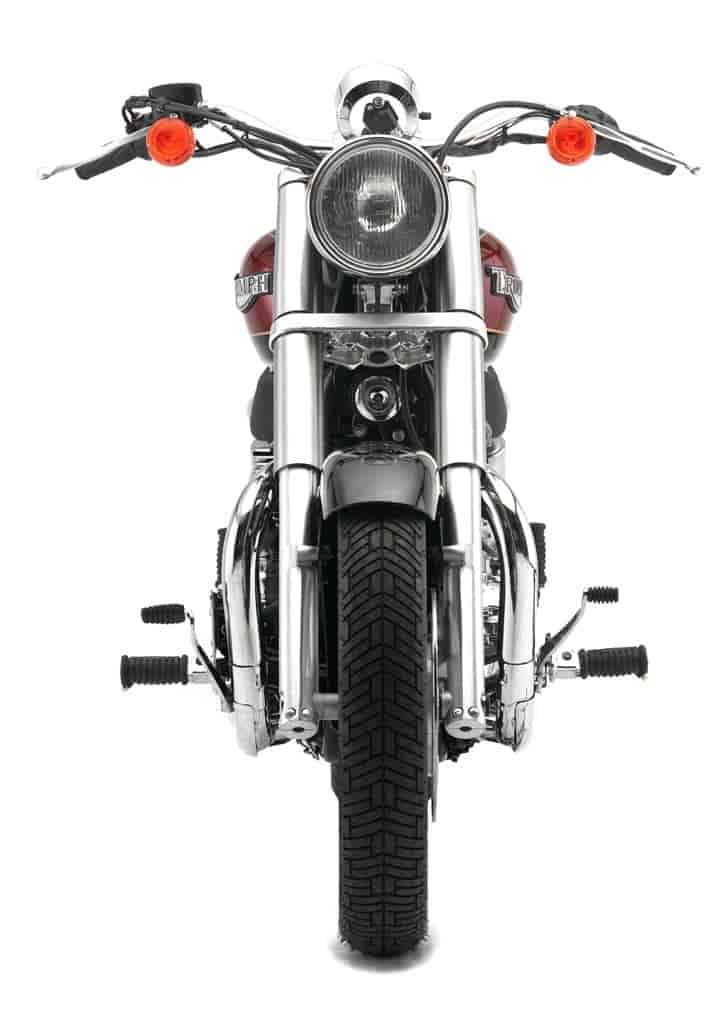 With its wide bars, forward set pegs and relaxed, parallel twin power the America mixes classic British engineering with style from the highways of the USA.
