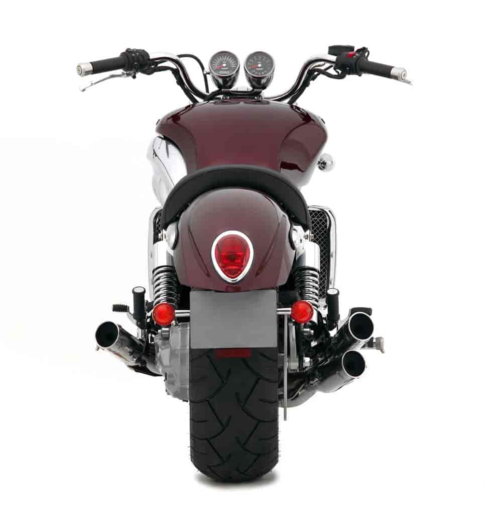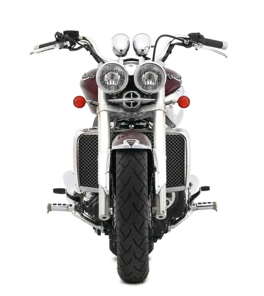 The fuel injected, twelve-valve powerplant has a cubic capacity of 2294cc – that’s 140 cubic inches – and makes 147ftlbs of torque at 2500rpm. This awesome output means even two-up the Rocket III accelerates with ease, and tenacious forward motion is just a slight twist of throttle away. However, the delectable, inexhaustible flow of power from the triple’s 2.3 litres engine can be effortlessly controlled using only two fingers. The Rocket III has a low centre of gravity and composed riding position giving a fine sense of balance and control. It sails round corners that would make most cruisers twitch making the Rocket III a truly useable machine that can cruise streets or hustle turns with equal and effortless ability.