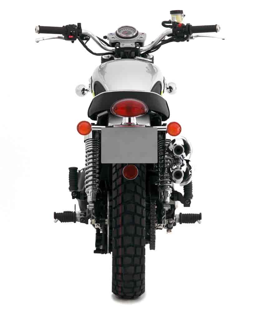 Fittingly for such an individual machine, a whole range of Triumph factory accessories are available for the Scrambler, all of which enhance its looks as well as adding functionality. They include a bash plate to protect the underneath of the engine, headlamp grille, number boards for the sides, tachometer, handlebar brace and a single seat and rack.
