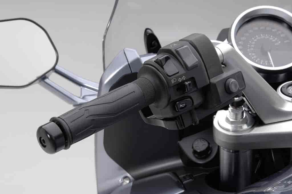 – Electrically adjustable windscreen was totally revised for 2006. The windshield features a fresh air duct at the bottom to reduce the vacuum tendency (negative pressure) in the cockpit area. The range of height adjustment range is 136 mm (5.4″). The windshield can be easily raised for greater wind protection or lowered for a sportier profile via a convenient handlebar-mounted switch.