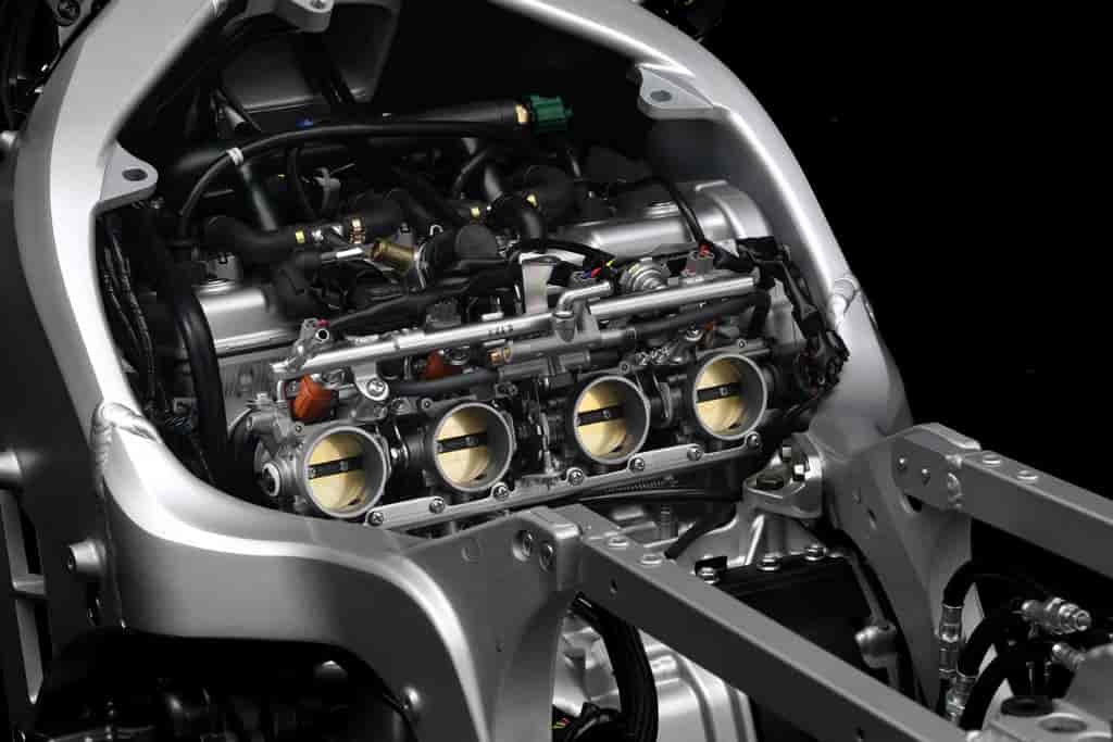 – Specially designed four-valve per cylinder head features compact, side-driven double-overhead camshafts providing outstanding low to mid rpm torque and horsepower for effortless sport touring and great passing power.
