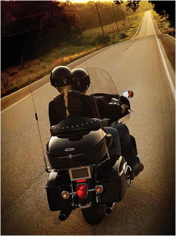 Big smooth V-four power in a big smooth motorcycle designed to transport two people and plenty of gear in complete luxury. Cue the sound system. Hit the cruise control and let the show begin.