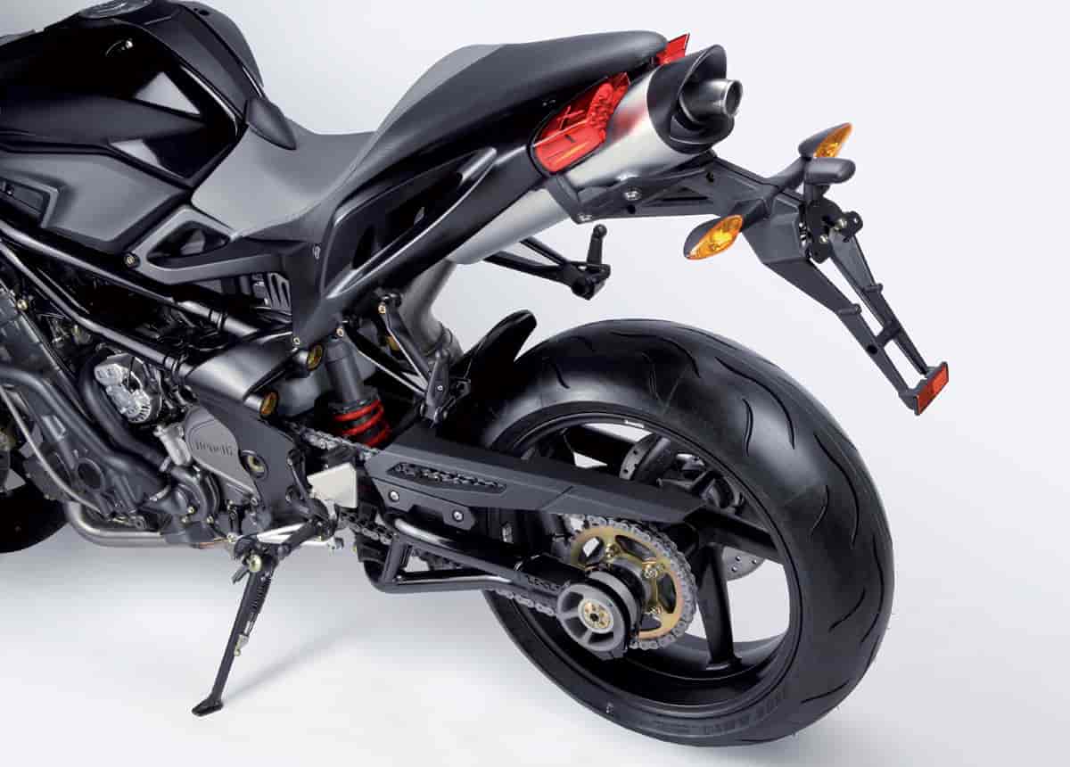 The new 899 was thought for the people that don’t want the benefits of her elder sister of the 1,130 c.c. motor. The DOHC 899 c.c. motor of 3 cylinders and 12 valves develops 115 CV to 10,500 rpm and 79 Nm maximum torque to 8,500 rpm.