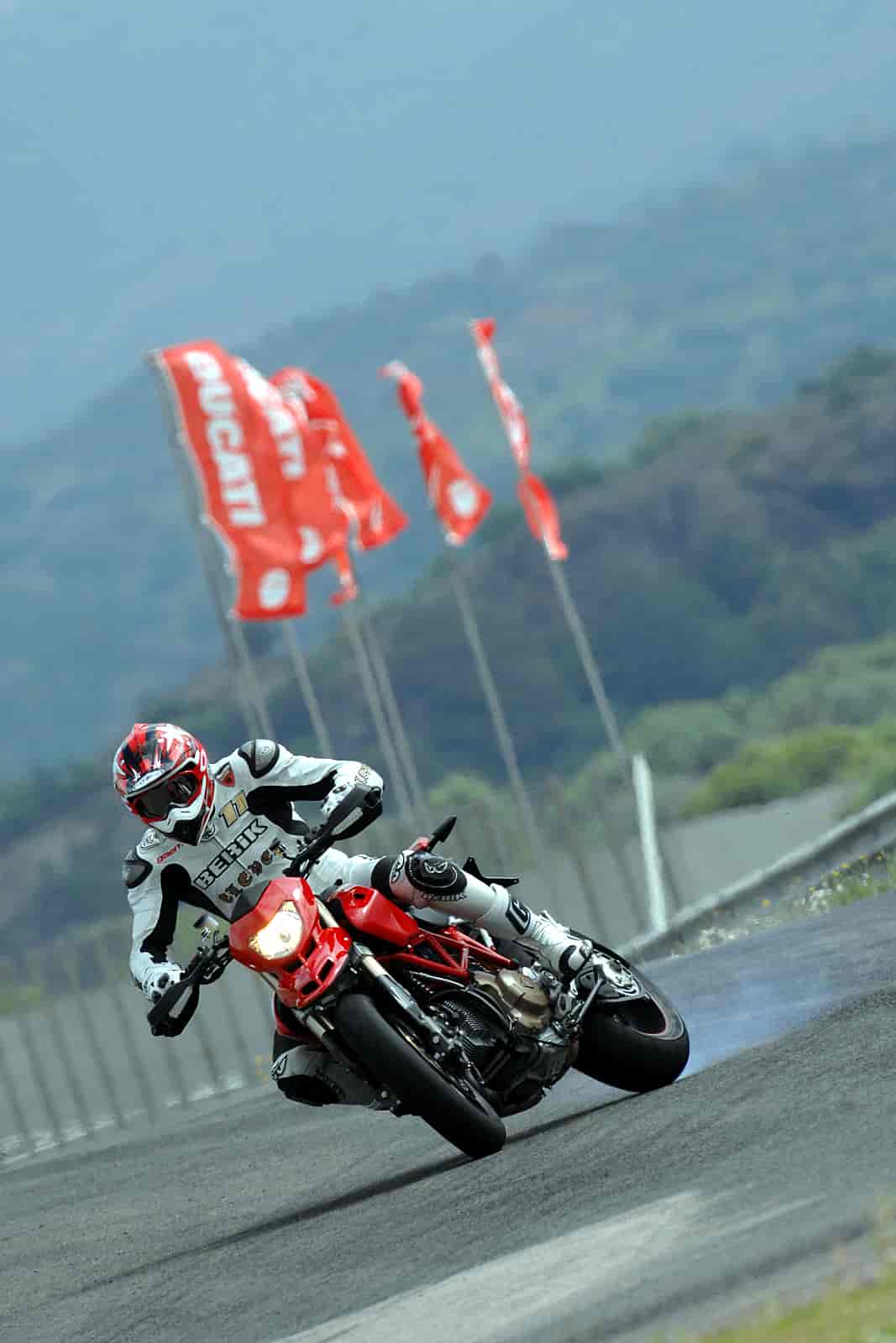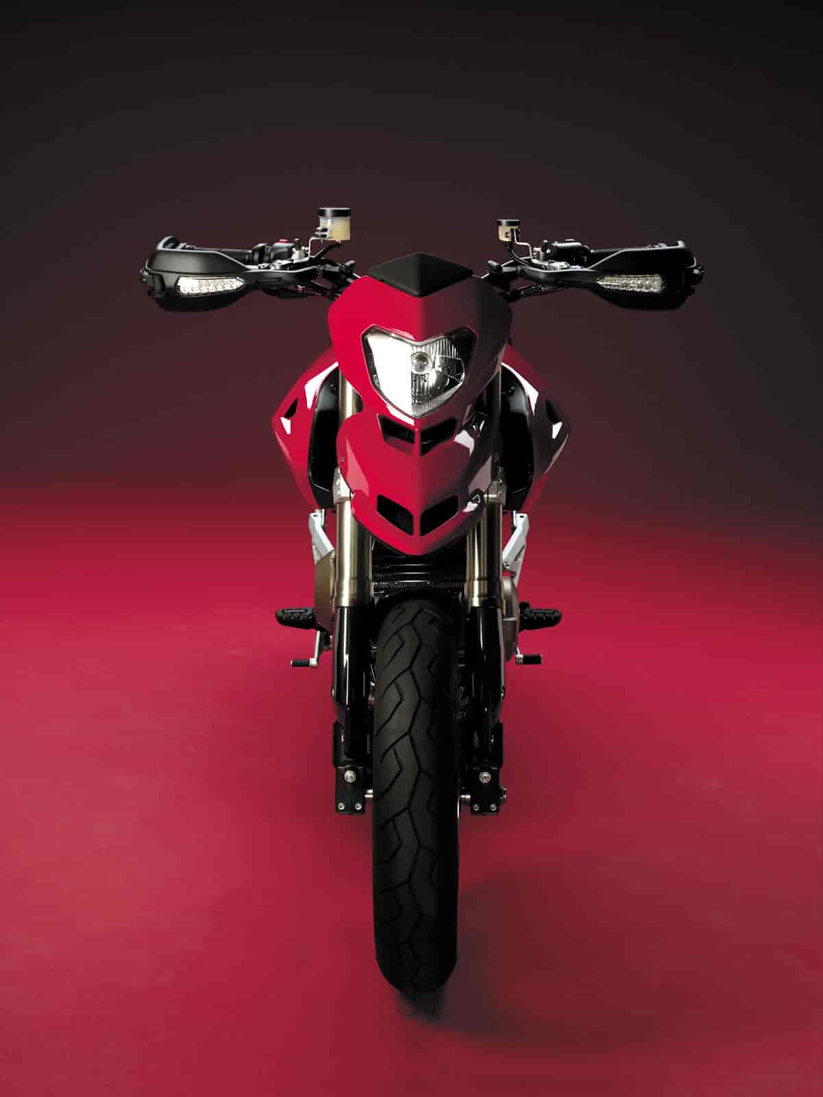 Riding the Hypermotard lets you rule the road. Wide, tapered section handlebars transfer control of the tarmac to the rider and a full length seat eases fore and aft movement – up front when entering the turns, then slide back for maximum traction on exit.
