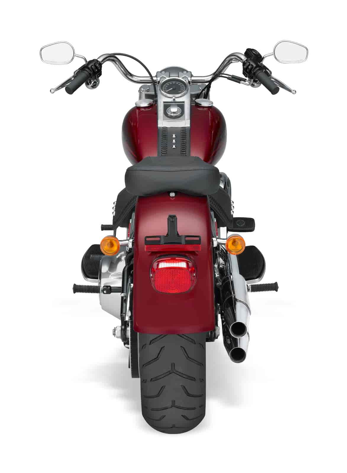 The Softail name is derived from the design of its rear suspension, which features a swingarm section that faithfully replicates the lines of an original, hardtail frame but provides a smooth, comfortable ride. The hidden horizontal coil-over shock absorbers for the rear suspension are mounted below the powertrain and out of sight.