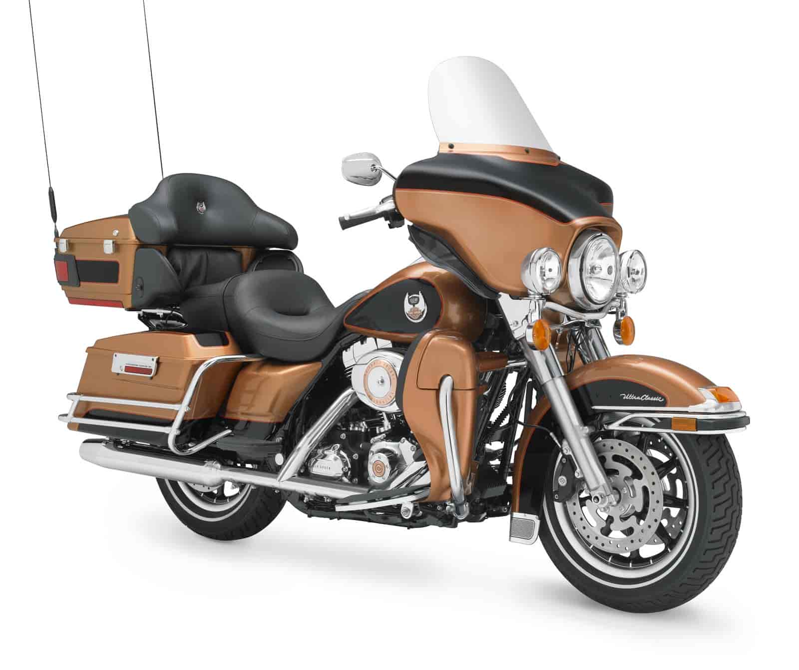 A step up in features, the FLHTCU Ultra Classic Electra Glide adds an adjustable Tour-Pak and passenger seating area, 40-watt Advanced Audio System by Harman/Kardon, and full engine instrumentation, plus additional fender and saddlebag trim, for beyond-the-basics touring comfort and versatility.