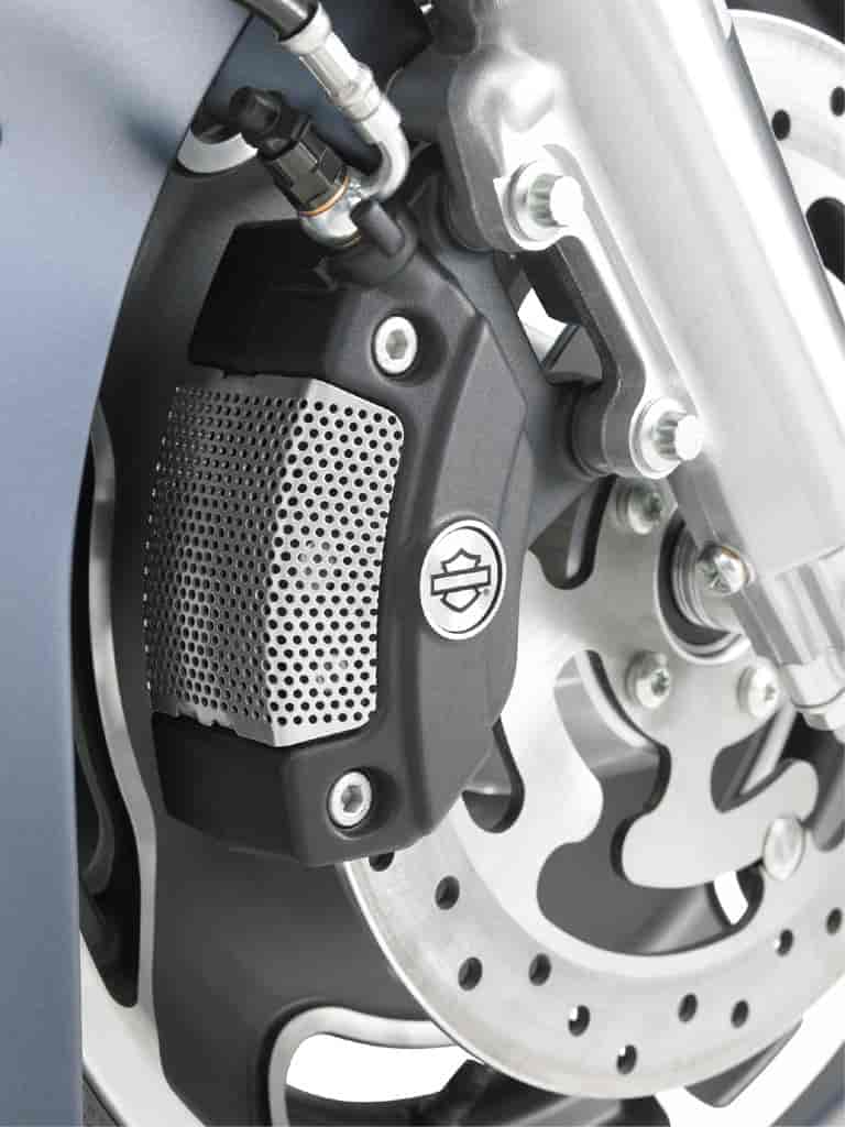 New Brembo Brakes with available Anti-Lock Braking System (ABS): New high-performance Brembo brakes and a factory-installed ABS option are available on all 2008 Touring models. Incorporating the latest in braking technology, the new Harley-Davidson Brembo brakes offer consistent braking and stopping power under all operating conditions. Besides improved brake performance and feel, the Touring motorcycles retain their distinctive Harley-Davidson style. This world class braking system comes to the Touring line with proven capability directly from the VRSC line of performance custom motorcycles. The all-new ABS feature is designed to help the rider maintain control during emergency stopping situations, especially those that happen in less-than-ideal conditions. The components of the Harley-Davidson ABS have been designed and packaged to be virtually invisible, preserving the uncluttered styling of the area around the wheels. Unlike many motorcycle ABS, Harley-Davidson ABS is a manual, independent system, meaning the rider maintains control of how much of each brake is applied..
