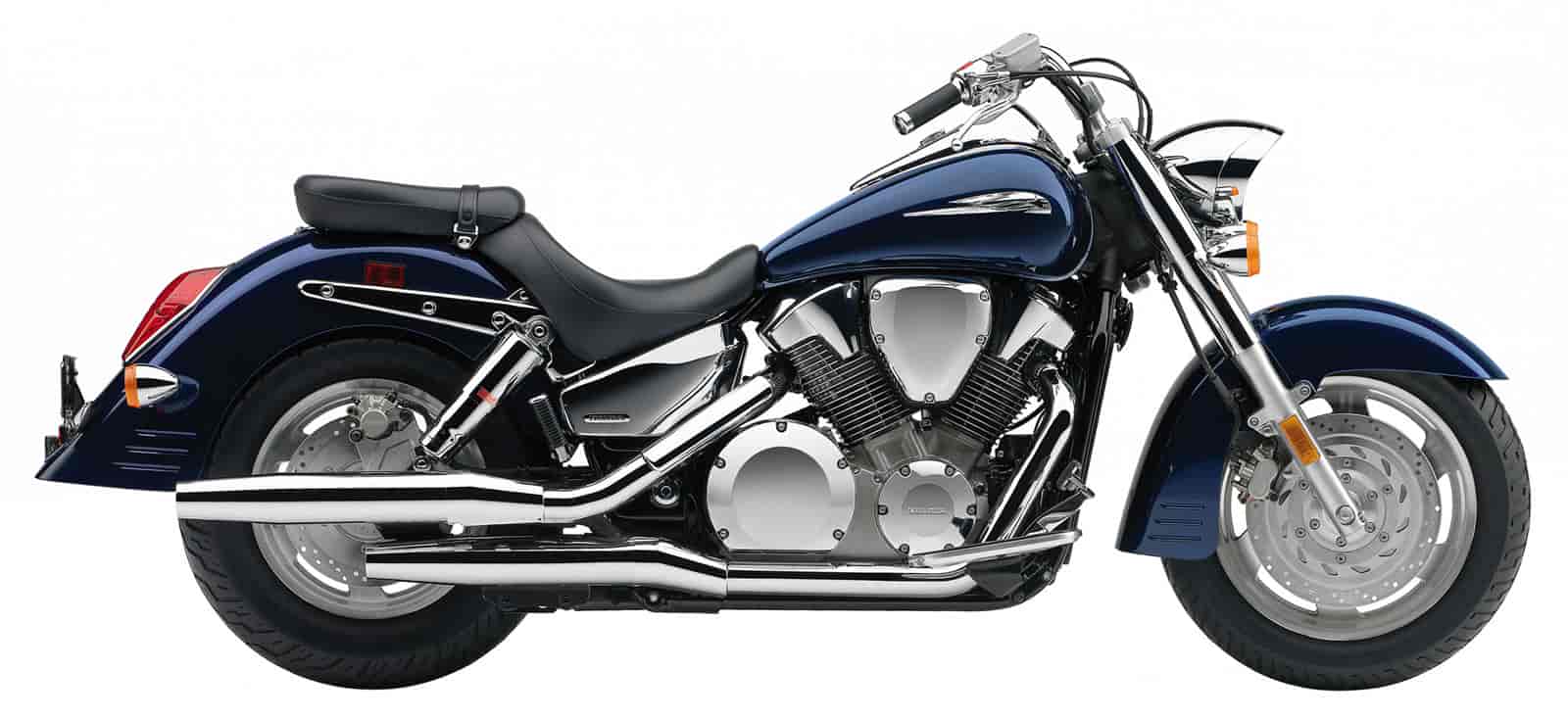 – VTX1300R colors include Black, Pearl White, Metallic Blue