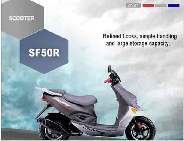 National Motorsports is proud to have the new Prima Rally Sports Scooter in its lineup since 2005. Building on the success of the Sense Scooter, Hyosung has moved into the sport scooter market. The Prima features a strong running 49cc forced air cooled 2-stroke engine, big wheels, great styling and many more features.