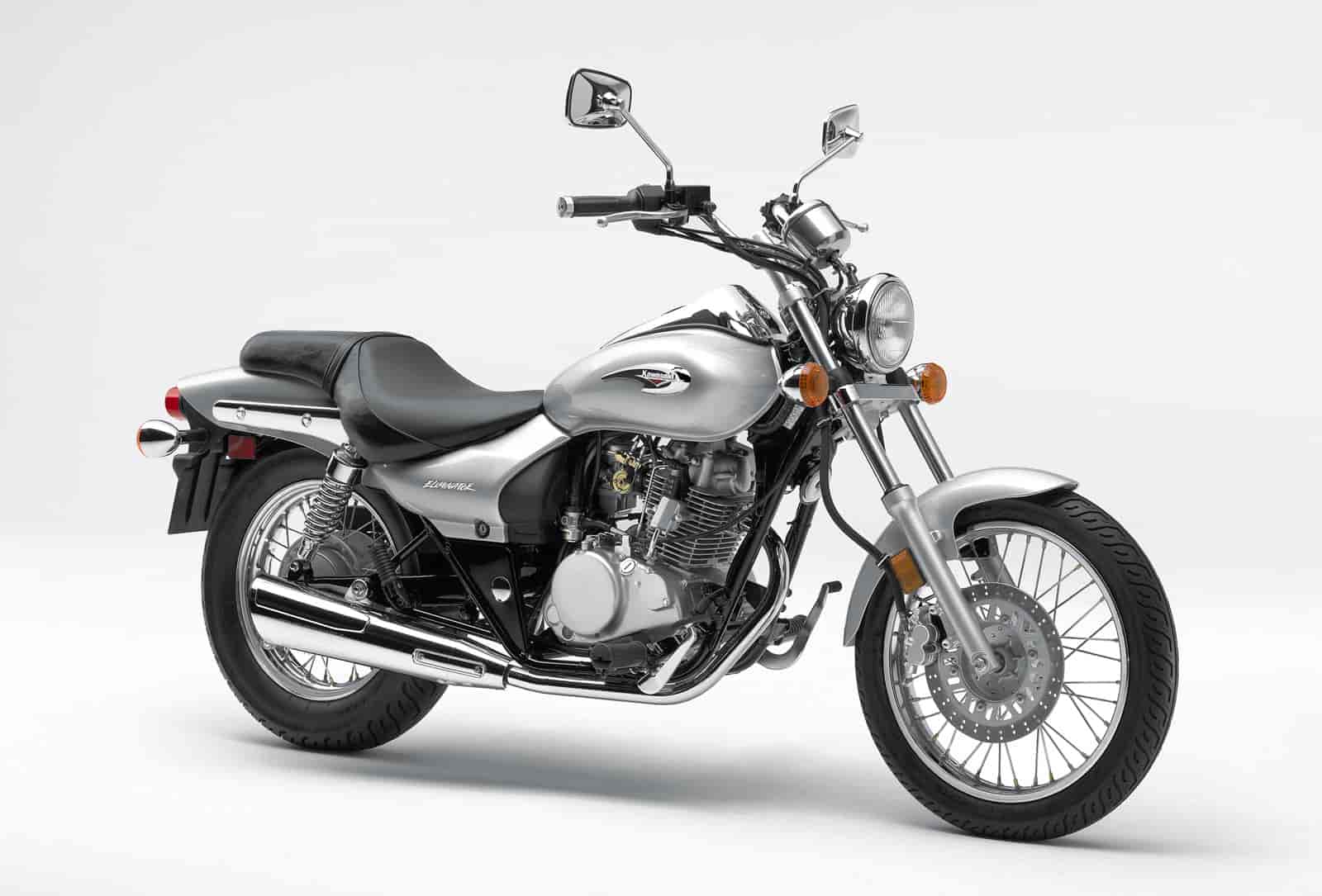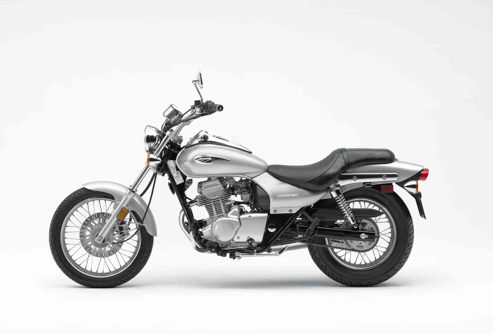 Available in Galaxy Silver for 2007, the Eliminator 125’s styling features a stepped seat with laid-back riding comfort for two, a stretched 3.4-gallon fuel tank, straight-flow exhaust and chrome-plated single headlight.