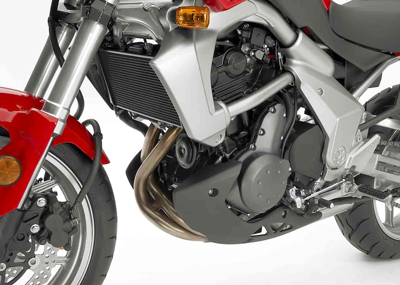 Utilizes 38mm Keihin throttle bodies with ECU controlled sub throttle valves for optimum performance and rideability