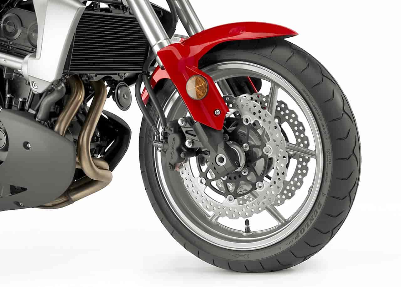 Also found on the Ninja ZX-6R and ZX-10R; the six-spoke design requires much less material between spokes so that the rim thickness is thinner and overall wheel weight is reduced
