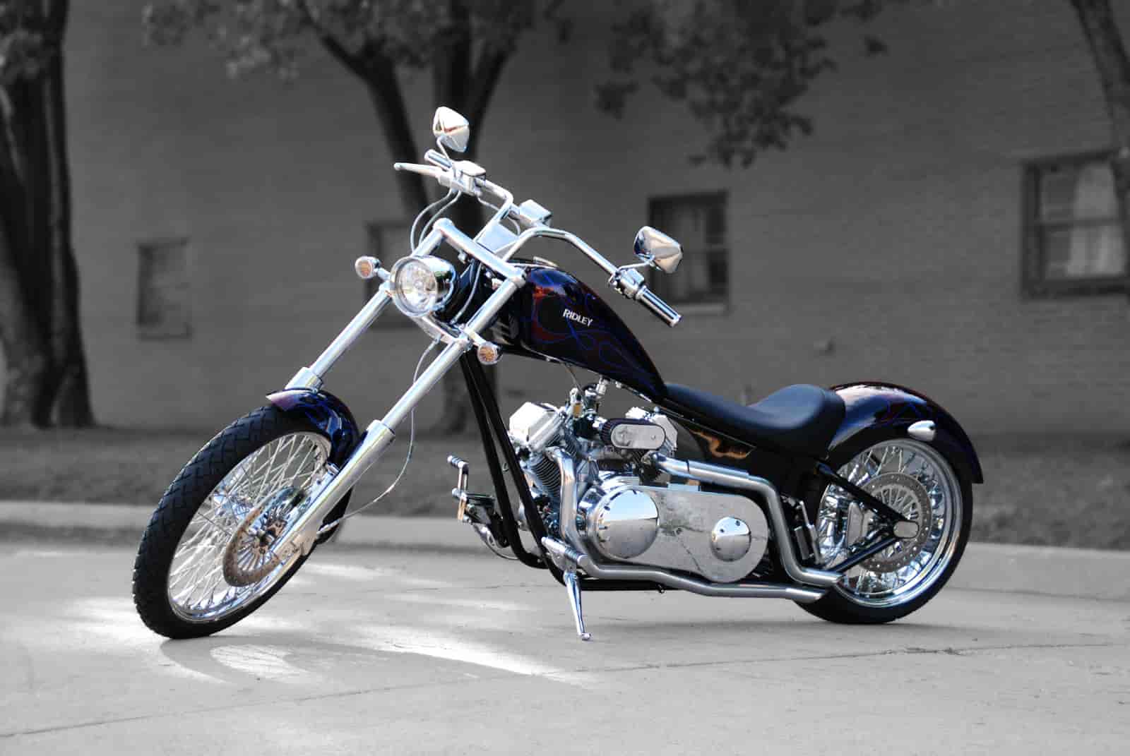 Some like the look. Others like the feel. Either way, Ridley’s ‘0eight Auto-Glide Chopper is a comfortable ride with looks that turns heads. Ergonomically designed with the rider in mind. Hidden twin pull shock rear suspension has room to travel, literally. With over three inches of available rear suspension, the Auto-Glide Chopper might look like a hard-tail but it rides like a dream. The high neck, low seat, stretched frame design creates the look that has won motorcycle shows across the nation. Ridley’s attention to detail is evident on this ‘0eight model down to the last inch. Included on this years model is Ridley’s new Direct-Drive Parking Brake. The feel of freedom has never looked this good!